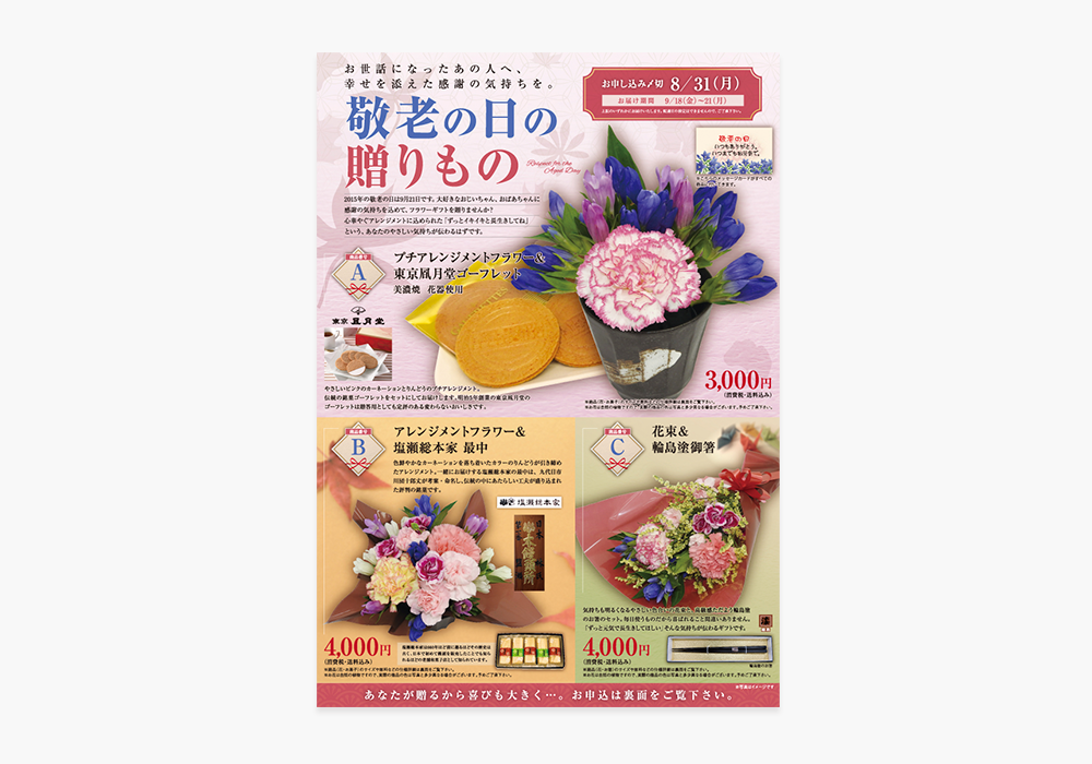 敬老の日のギフト広告。画像と原稿をご提供いただいて制作しました。