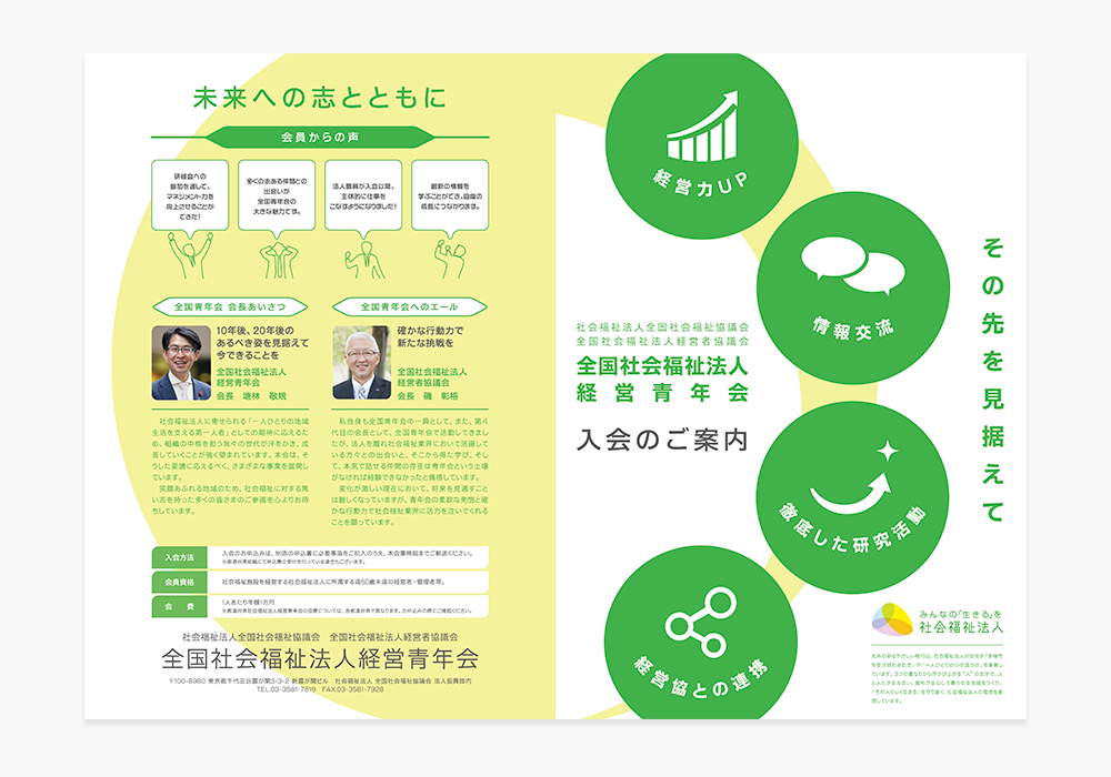 「入会のご案内」パンフレット。テキストと画像をご提供いただき、ご要望のイメージをお伺いして制作しました。