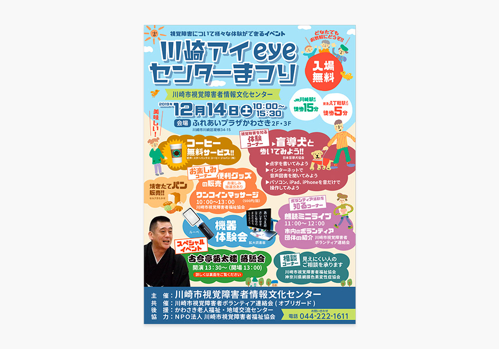 川崎アイeyeセンターまつり告知用広告。画像と原稿をご提供いただいて制作しました。