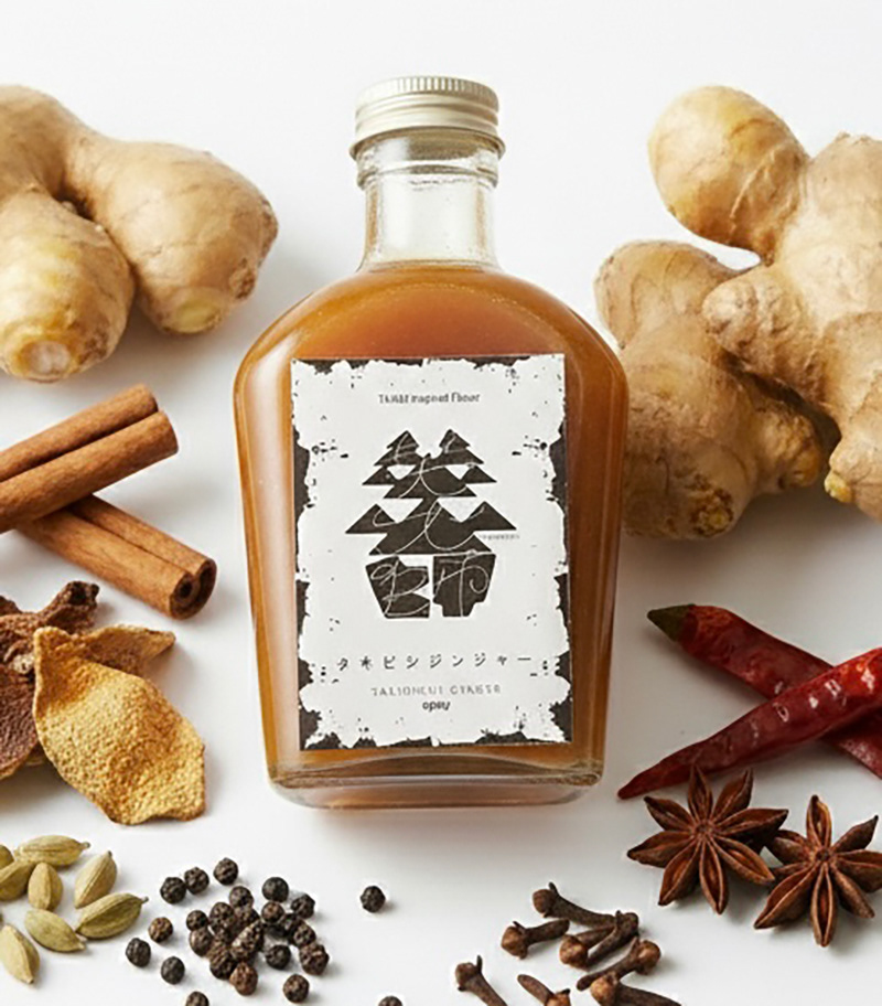 焚火師が作るこだわりのクラフトジンジャーシロップのロゴデザイン。 重なり合う黒いシェイプは、「焚・火・師」の三文字を抽象的にデフォルメしたもので、流れる白い線は焚き火の炎や煙、風の流れを想起させる構成としています。 和のやさしさとモダンな感性、そして洗練された高品質さを併せ持ち、自然とともにゆったりと過ごす大人の焚き火時間を象徴する印象的なロゴに仕上げました。