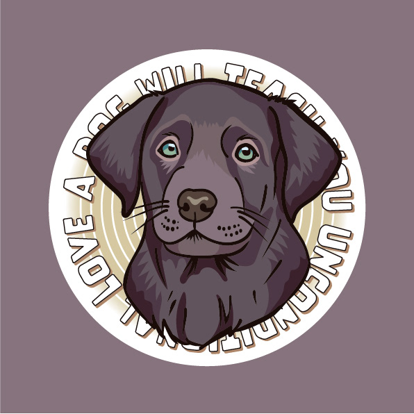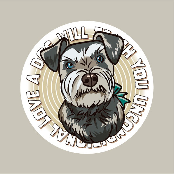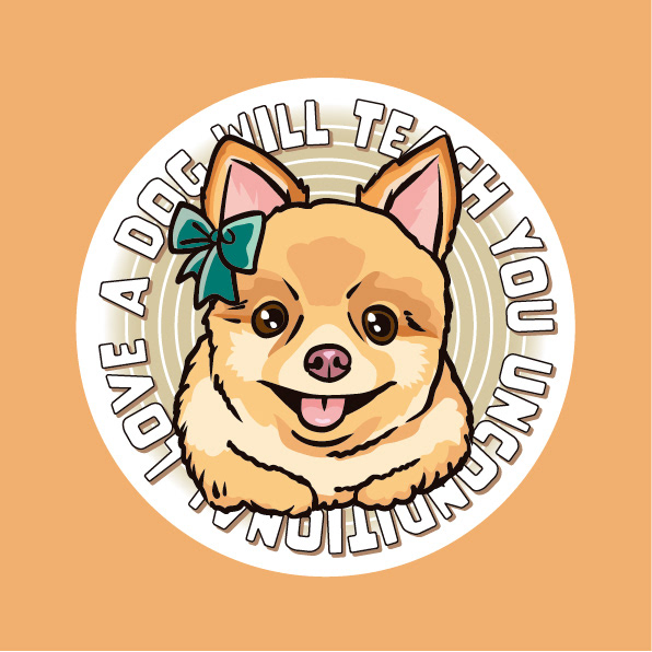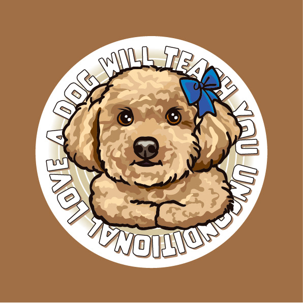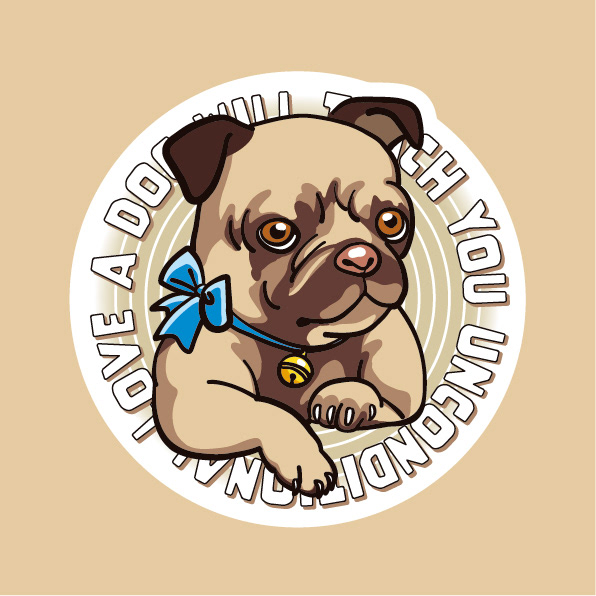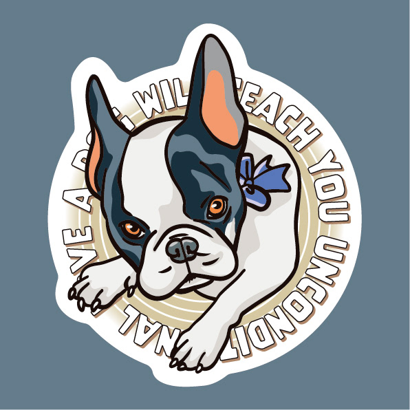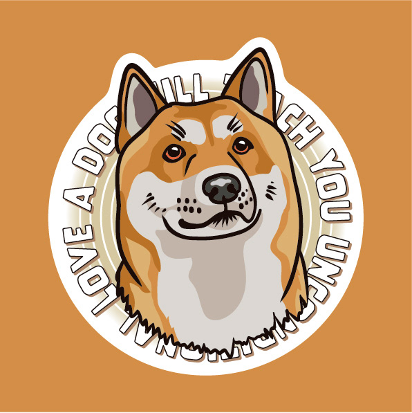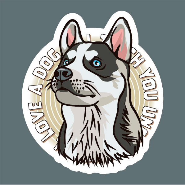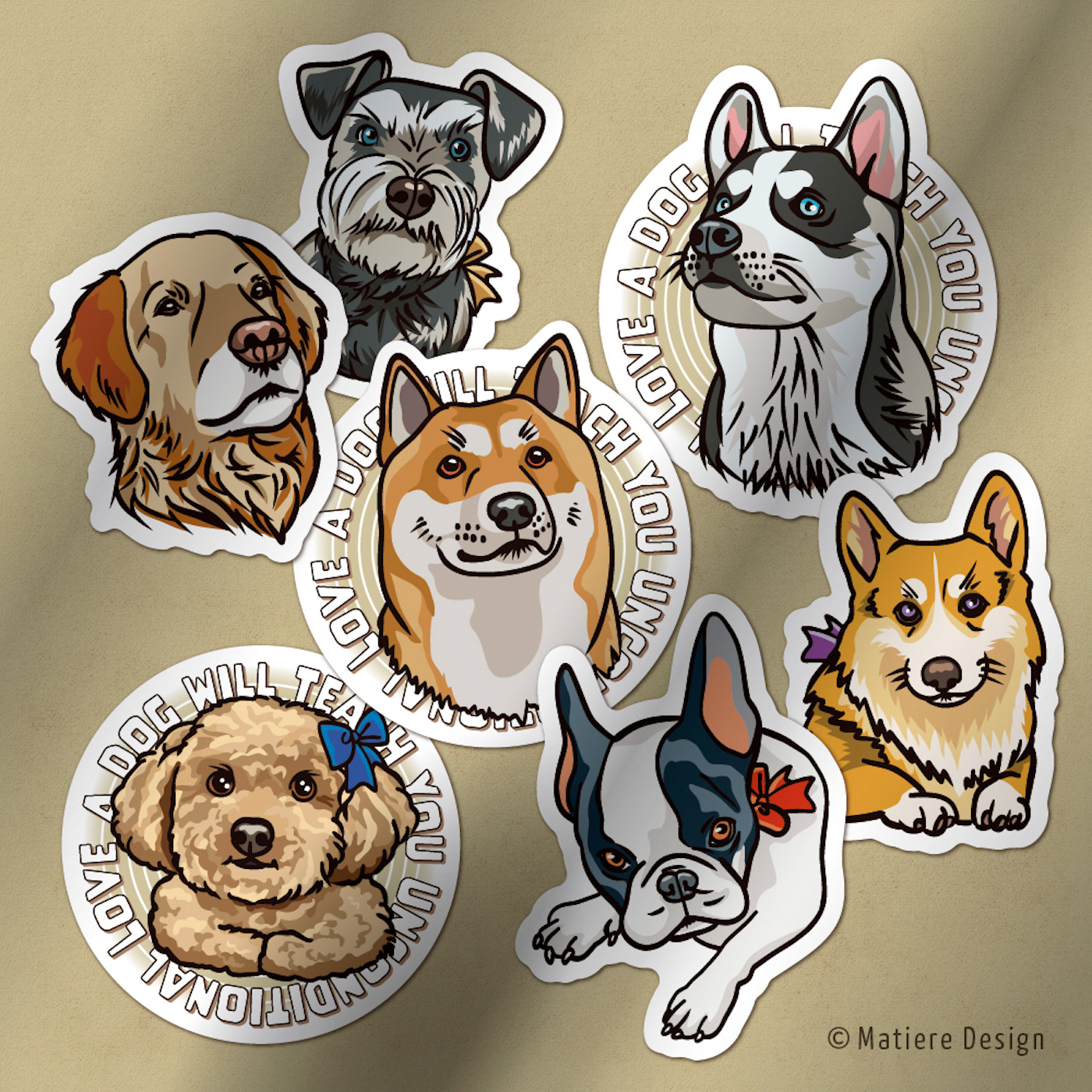 犬好きの方向けに「A dog will teach you unconditional love(犬はあなたに無条件の愛を教えてくれるでしょう)」のテキスト入りで、様々な種類の犬のステッカーを制作しました。