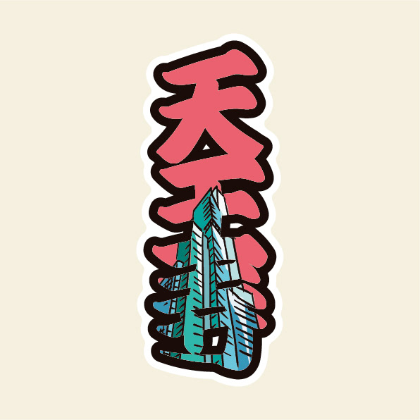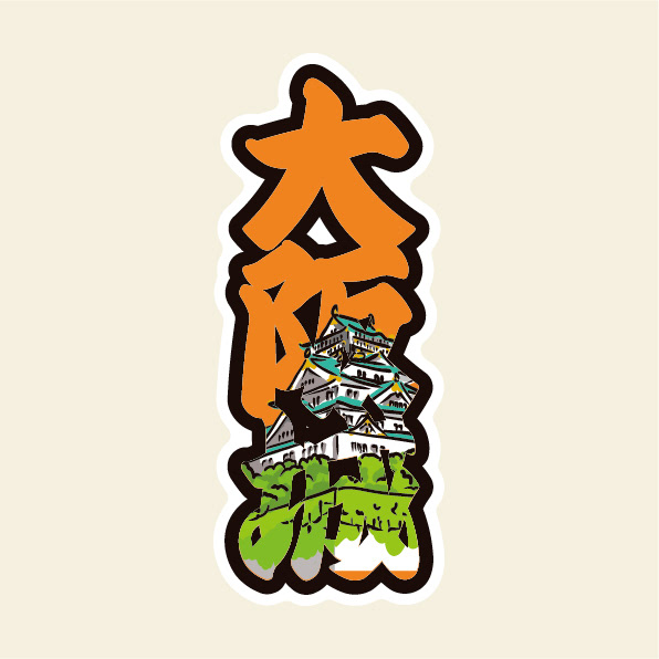 主に大阪の観光名所や名物などの名詞を太筆文字にして、各モチーフのイラスト入りで制作しました。