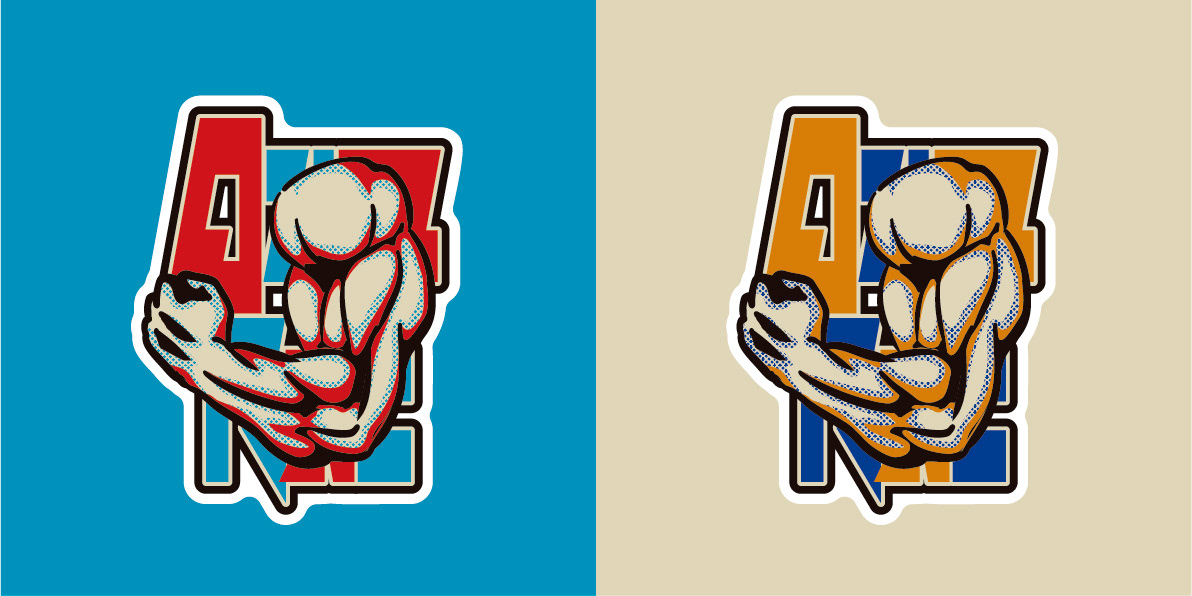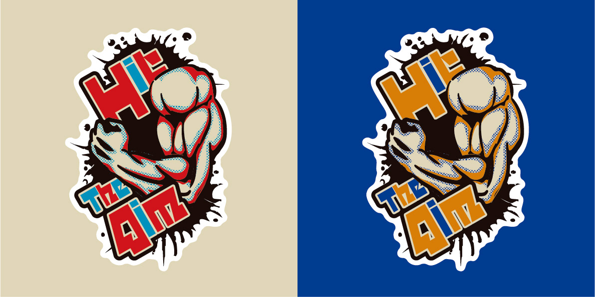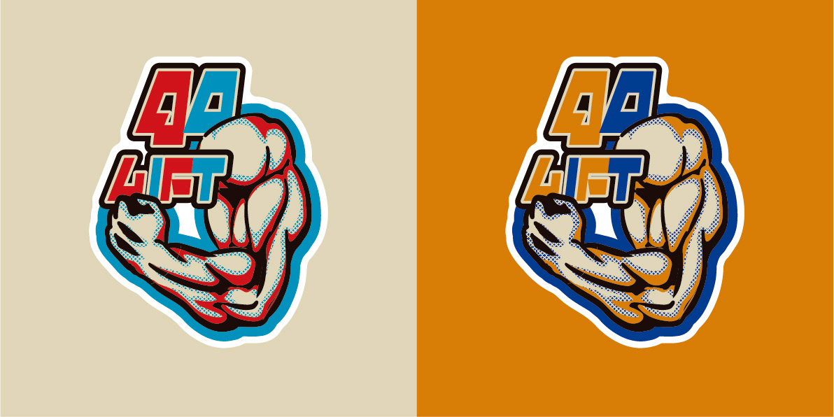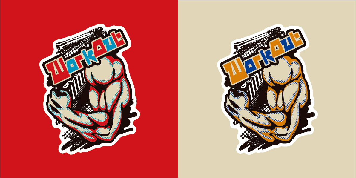 筋トレ好きな方向けに腕筋のイラストとGymRat、Hit the gym、workoutなどのテキストと組み合わせて制作しました。